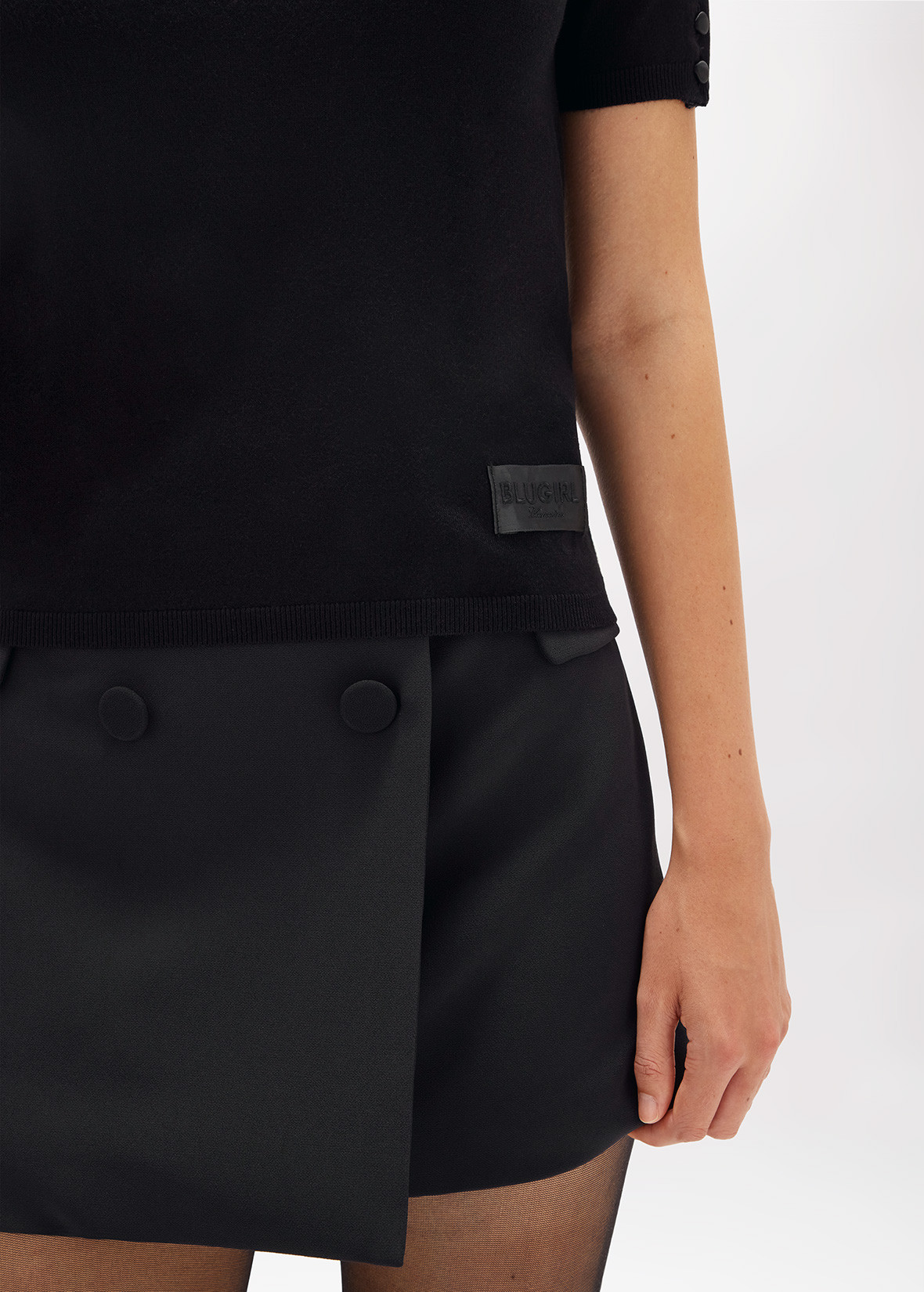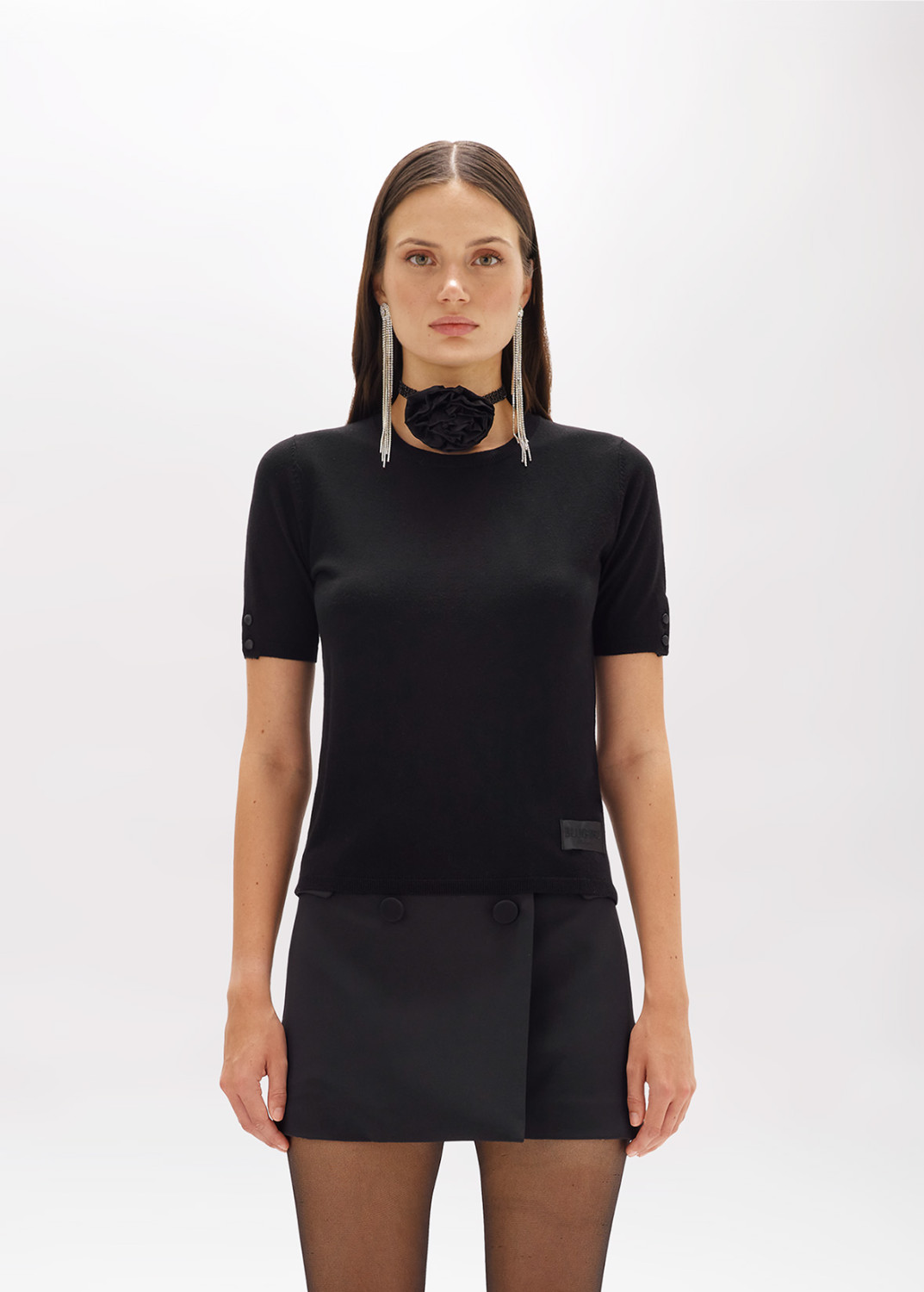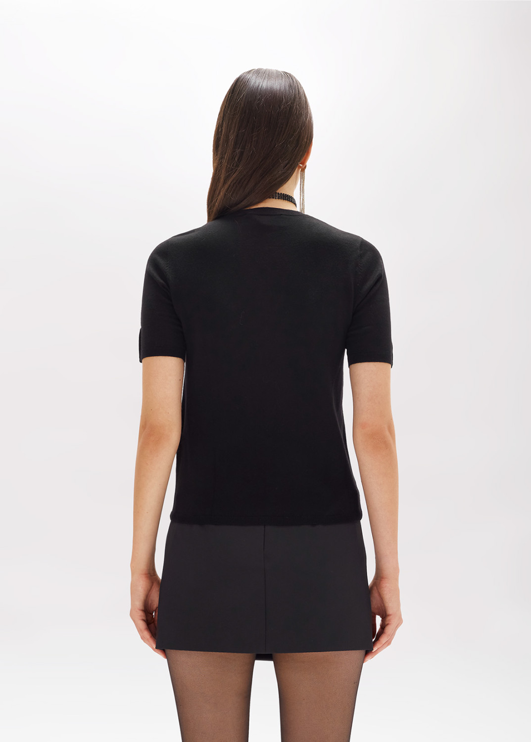 ALONE OR AS AN UNDER-JACKET, THIS VISCOSE BLEND SWEATER BOASTS A SOFT-TOUCH CASHMERE EFFECT. REGULAR CUT, ROUND NECK, SHORT SLEEVES, SATIN LABEL WITH EMBROIDERED LOGO AT THE BOTTOM. ESSENTIAL AND PERFECT IN A MYRIAD OF LOOKS. COMPOSITION: 55% VISCOSE 45% POLYAMIDE