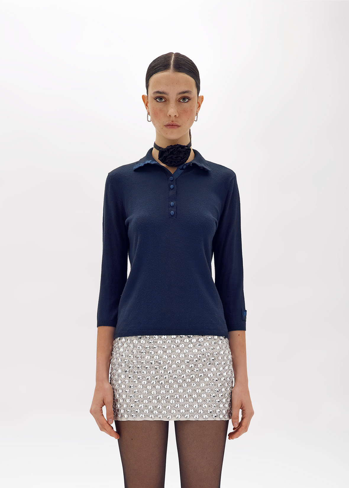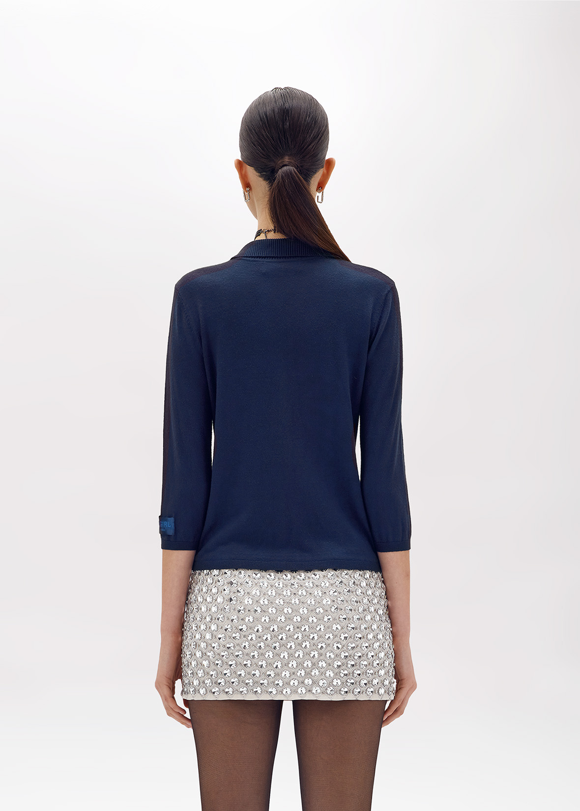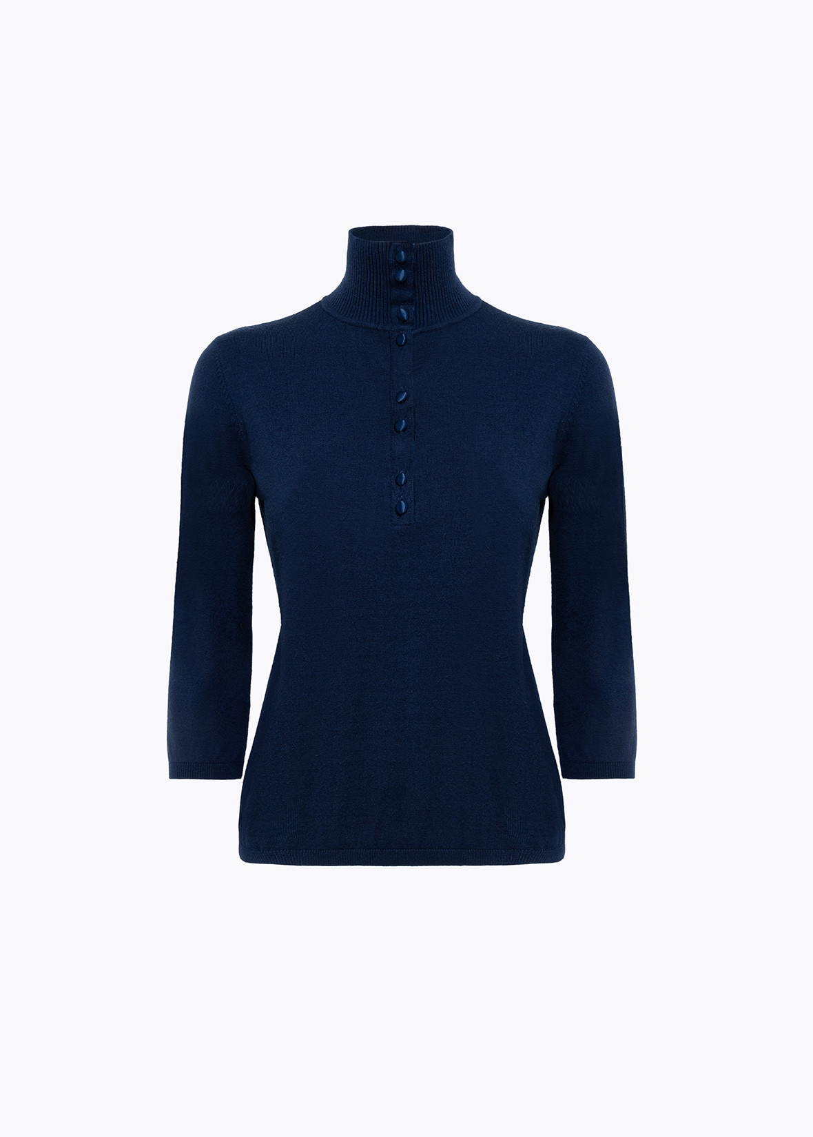 TRENDY CUT FOR THIS TURTLE NECK SWEATER IN VISCOSE BLEND WITH A SOFT-TOUCH CASHMERE EFFECT. REGULAR CUT, RIBBED TURTLE NECK, SATIN-COVERED BUTTON CLOSURE, FINISHED INTERNALLY WITH RIBBON, THREE-QUARTER SLEEVES, SATIN LABEL WITH EMBROIDERED LOGO. ESSENTIAL AND PERFECT IN A MYRIAD OF LOOKS. COMPOSITION: 55% VISCOSE 45% POLYAMIDE