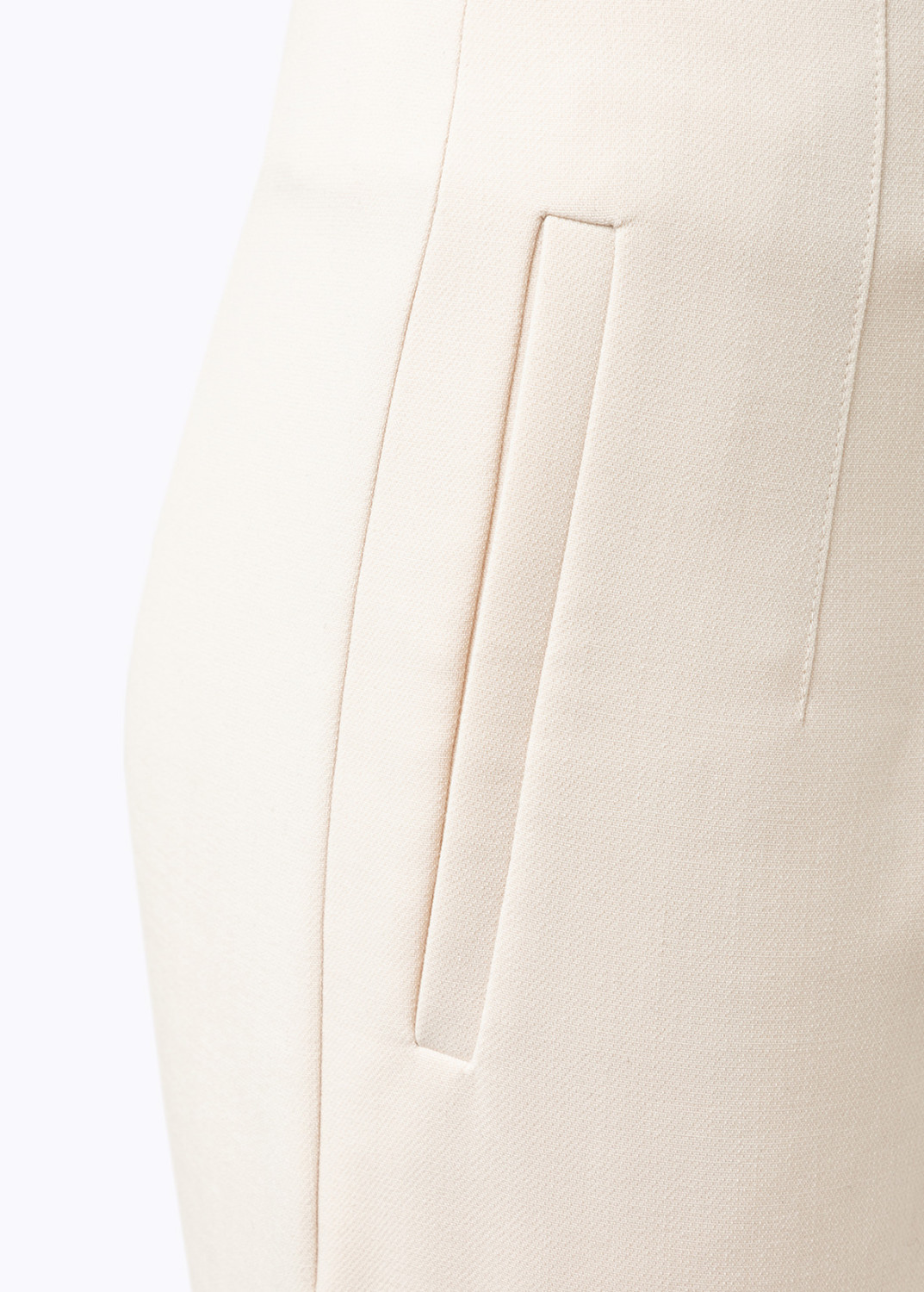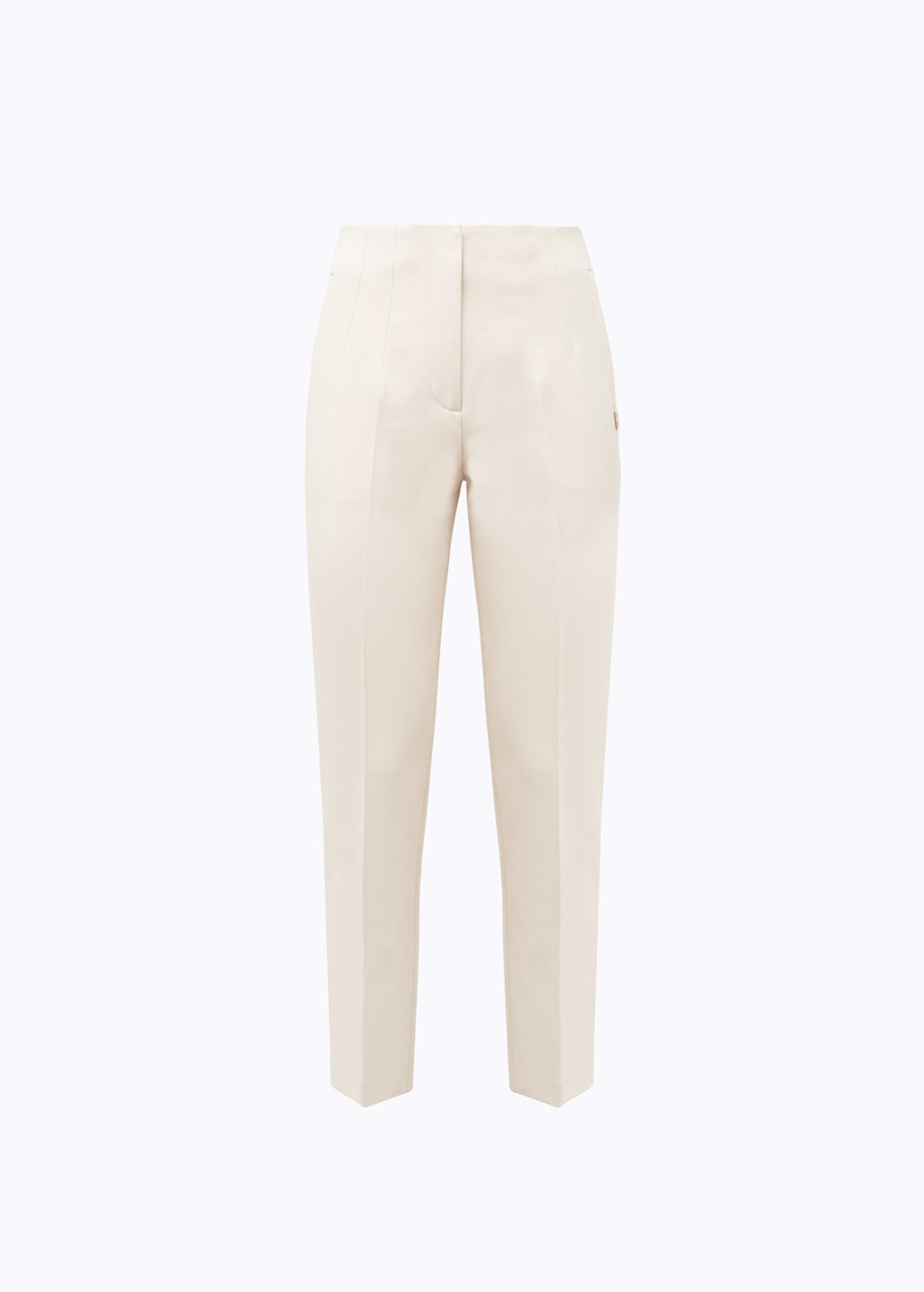 THESE WARM-HAND FEEL WOOL CADY PANTS WITH WAIST SEAMS THAT STREAMLINE AND DEFINE THE FIT BEAUTIFULLY ENHANCE THE SILHOUETTE. HIGH WAIST, ZIP AND CONCEALED HOOK CLOSURE, WELT POCKETS AT THE HIPS. WEAR THEM MATCHED WITH THE COORDINATED BLAZER. COMPOSITION: 63% POLYESTER 32% VISCOSE 5% ELASTANE