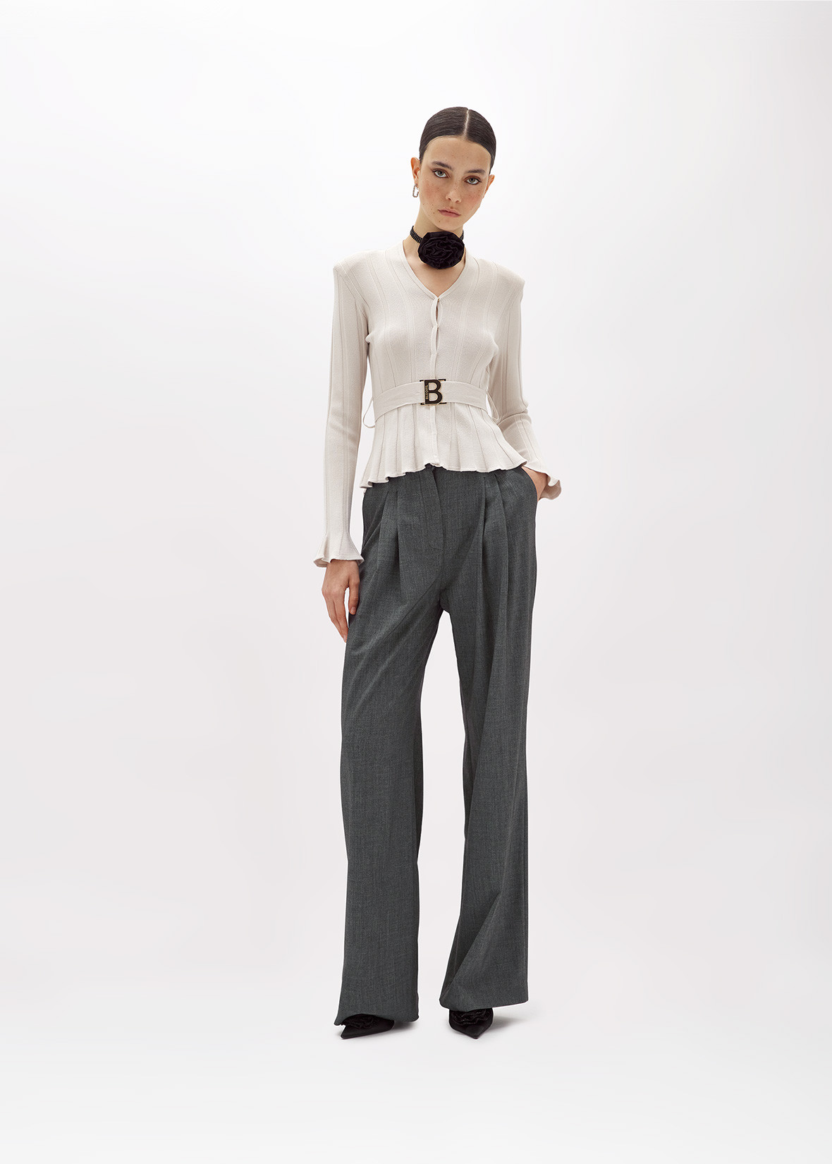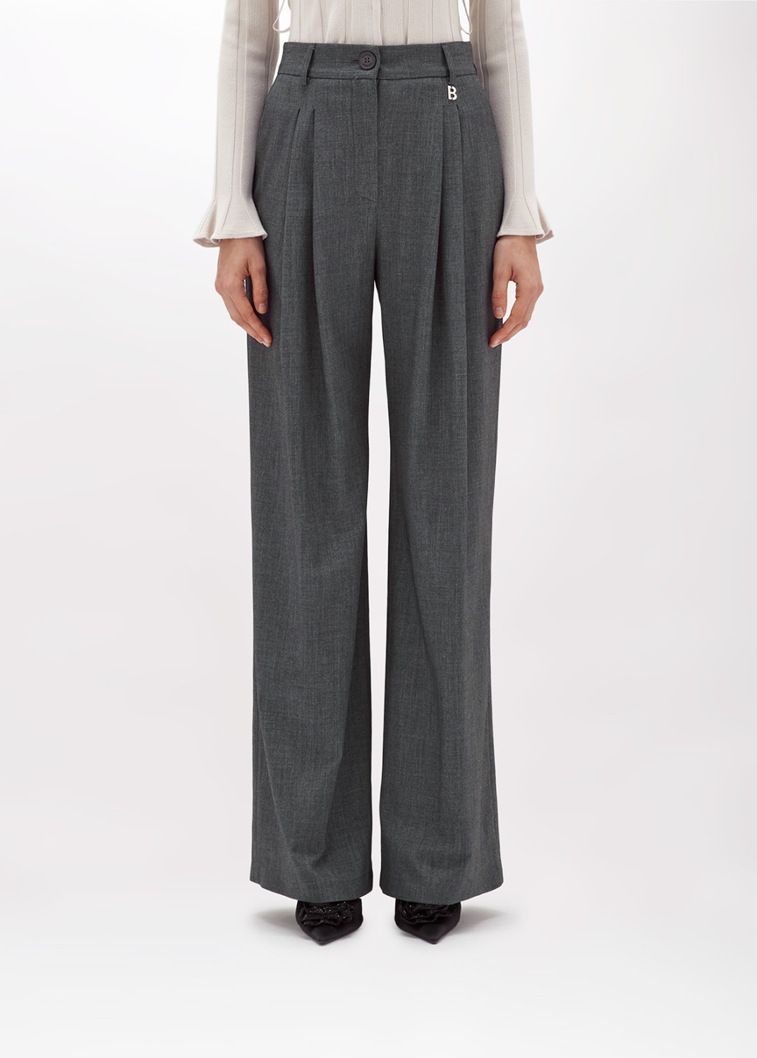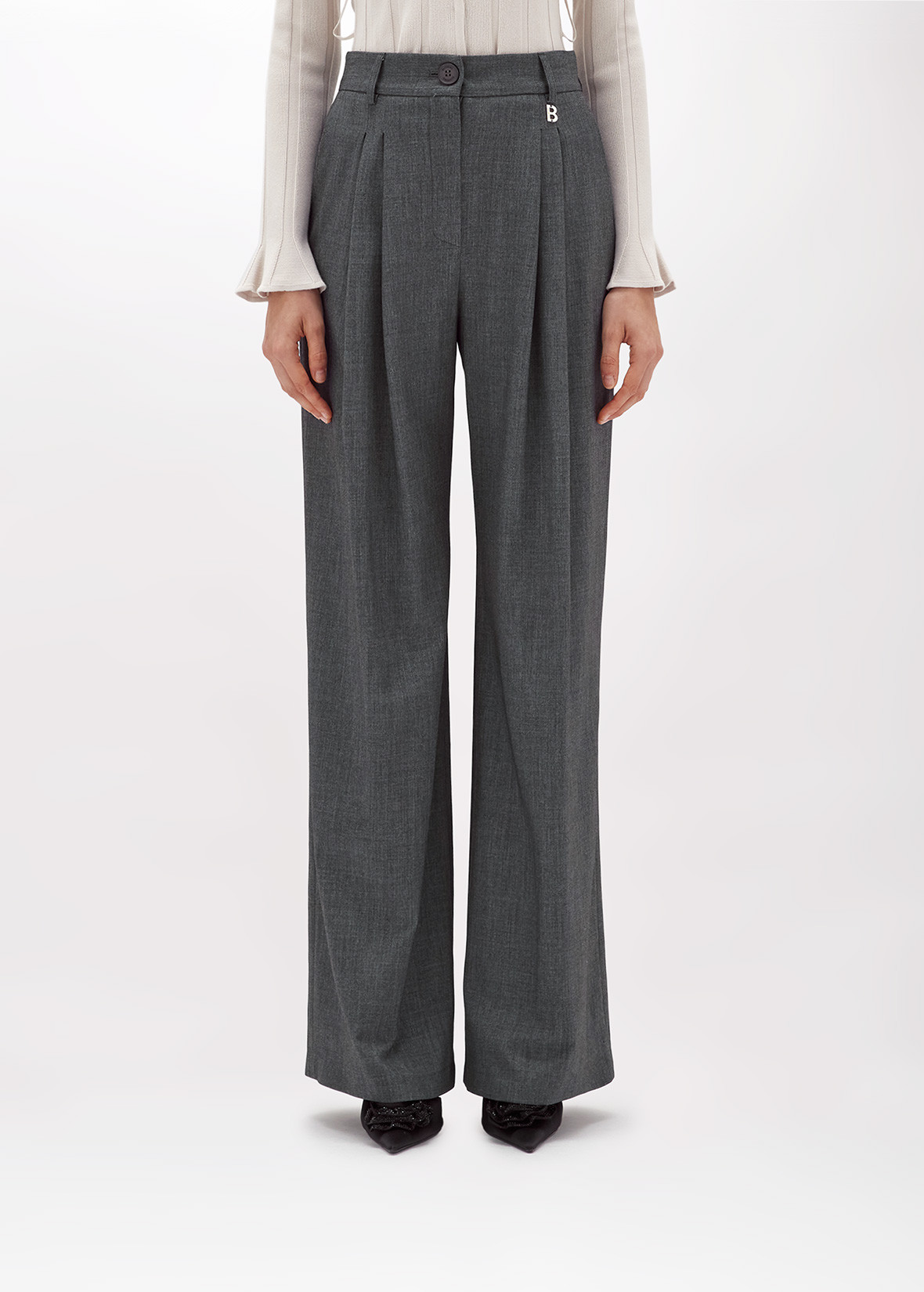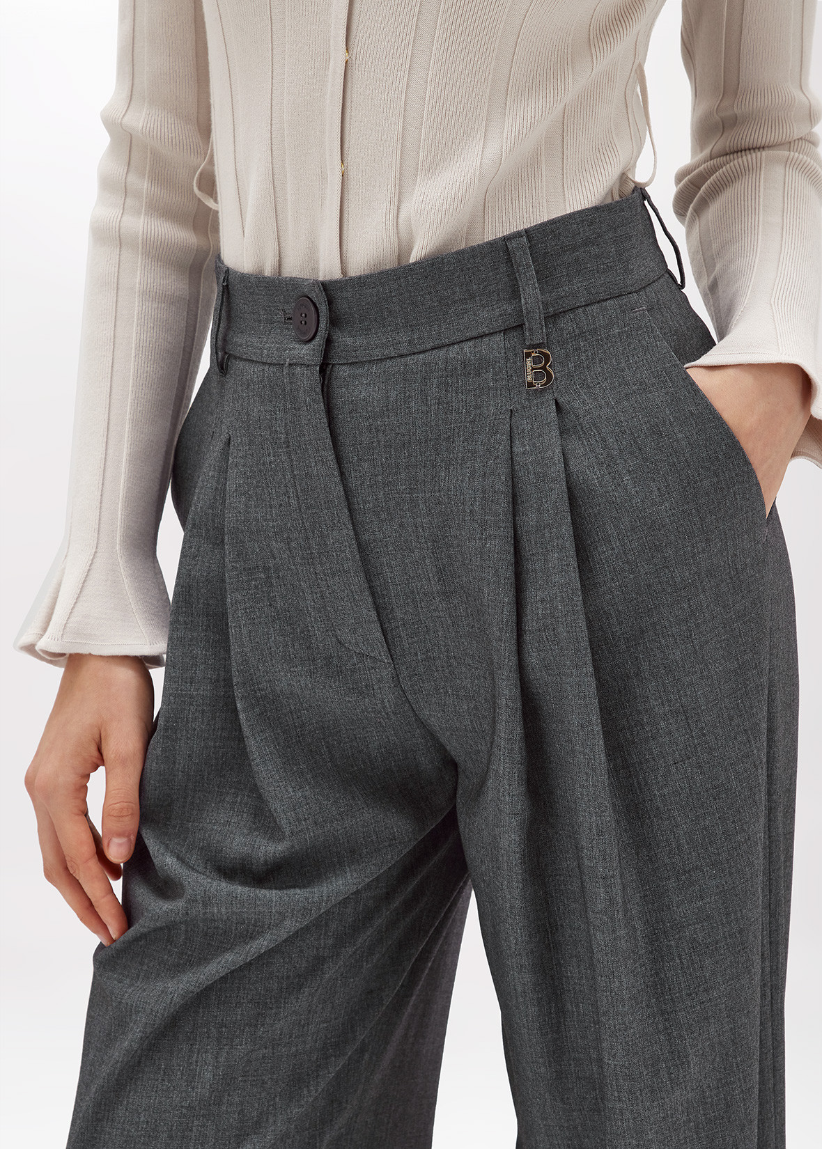 CREATE A UNIQUE TAILORED SUIT WITH THE VISCOSE BLEND MÉLANGE FLANNEL PANTS. ZIP CLOSURE WITH TONE-ON-TONE BUTTON, LOGO PLAQUE, BELT LOOPS, AND HIP PLEATS TO ADD MOVEMENT. COMPLETE YOUR OUTFIT WITH THE COORDINATED BLAZER JACKET. COMPOSITION: 68% POLYESTER 28% VISCOSE 4% ELASTANE