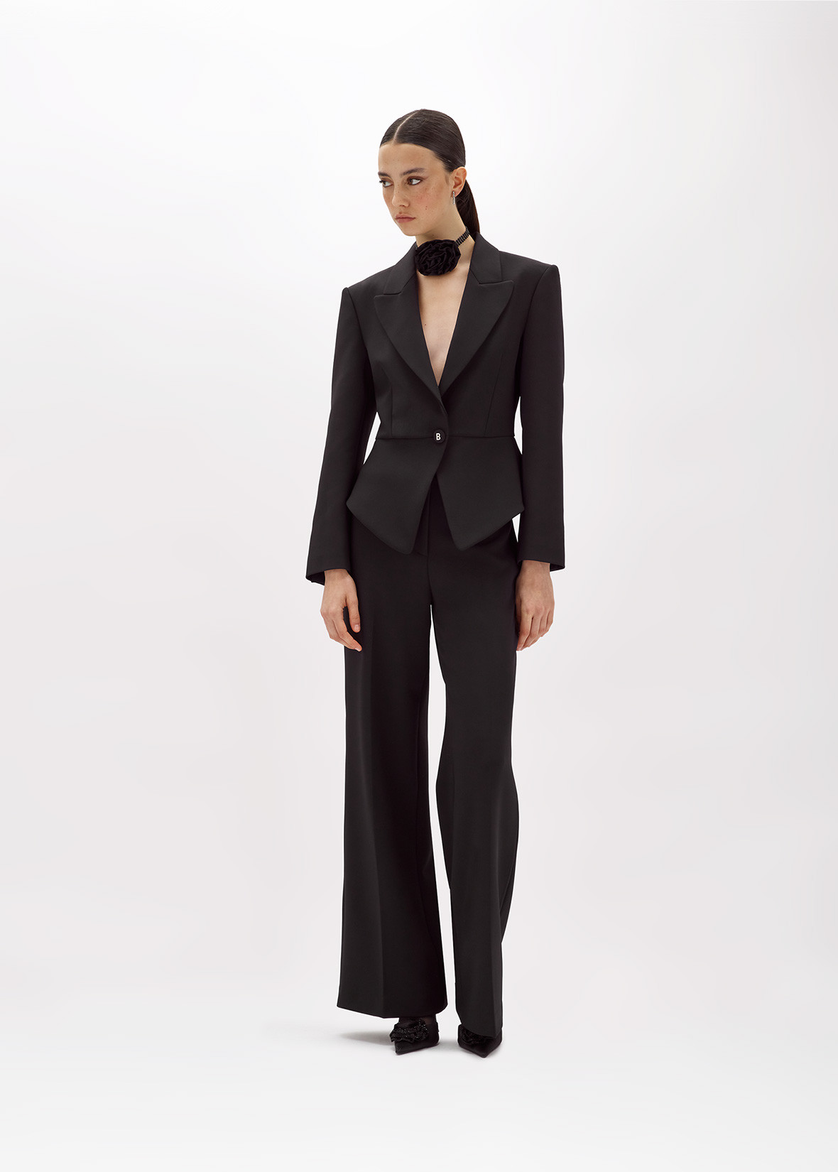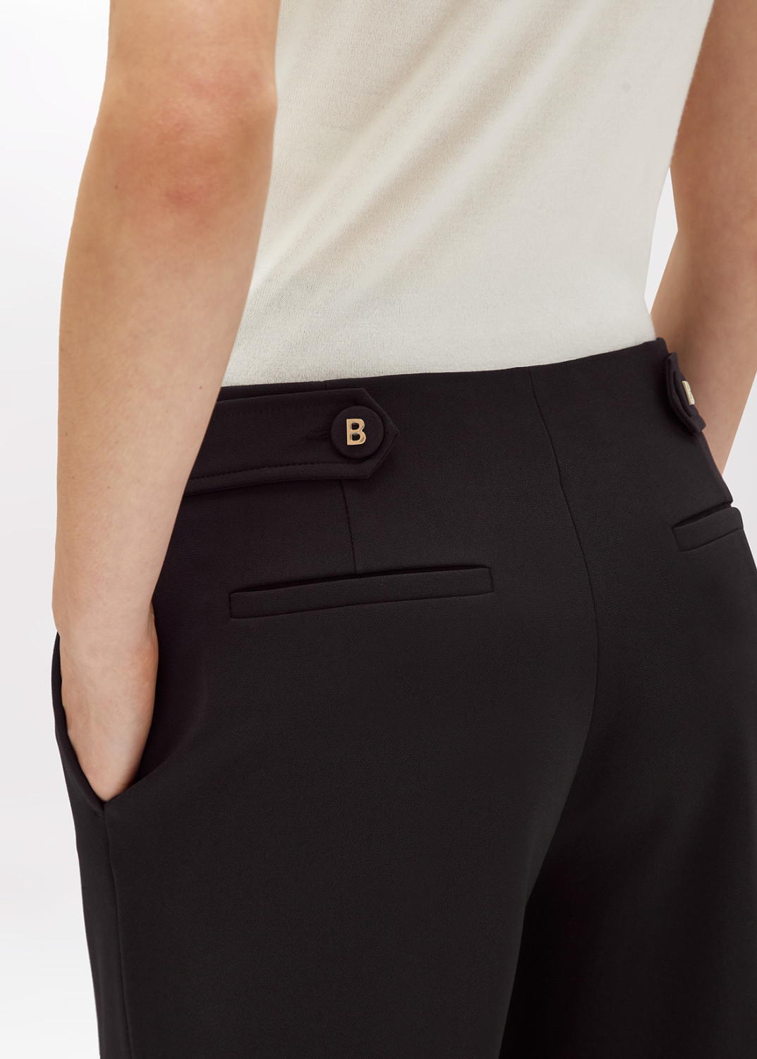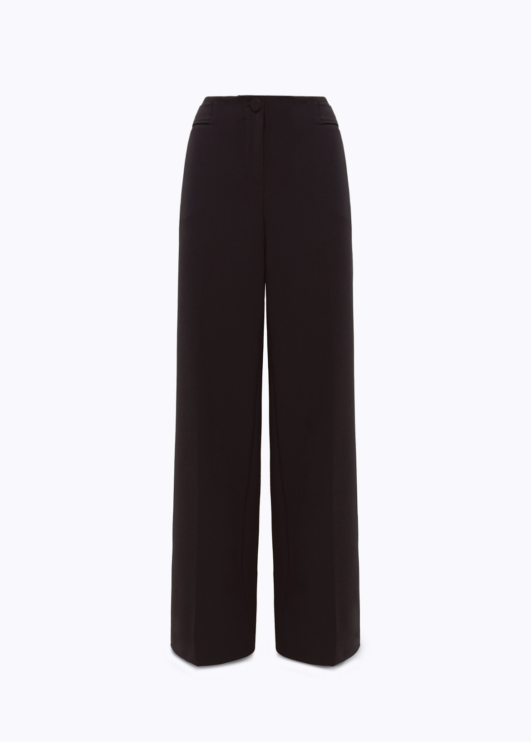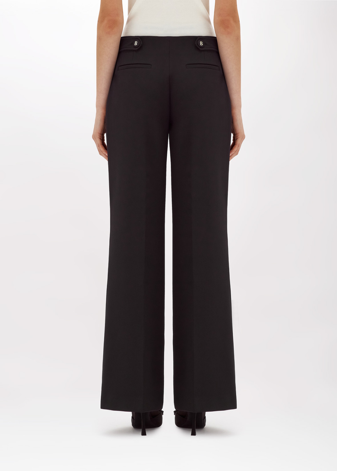 TAILORED AND VERSATILE, THESE WIDE-LEG PANTS IN STRETCH CRÊPE FEATURE BELT LOOPS AT THE HIPS SECURED AT THE BACK WITH LOGOED BUTTONS. MEDIUM-LOW WAIST, ZIP AND COVERED BUTTON CLOSURE, SIDE POCKETS, WELT POCKETS AT THE BACK, AND PRESSED CREASES. WEAR THEM MATCHED WITH THE COORDINATED BLAZER. COMPOSITION: 96% POLYESTER 4% ELASTANE