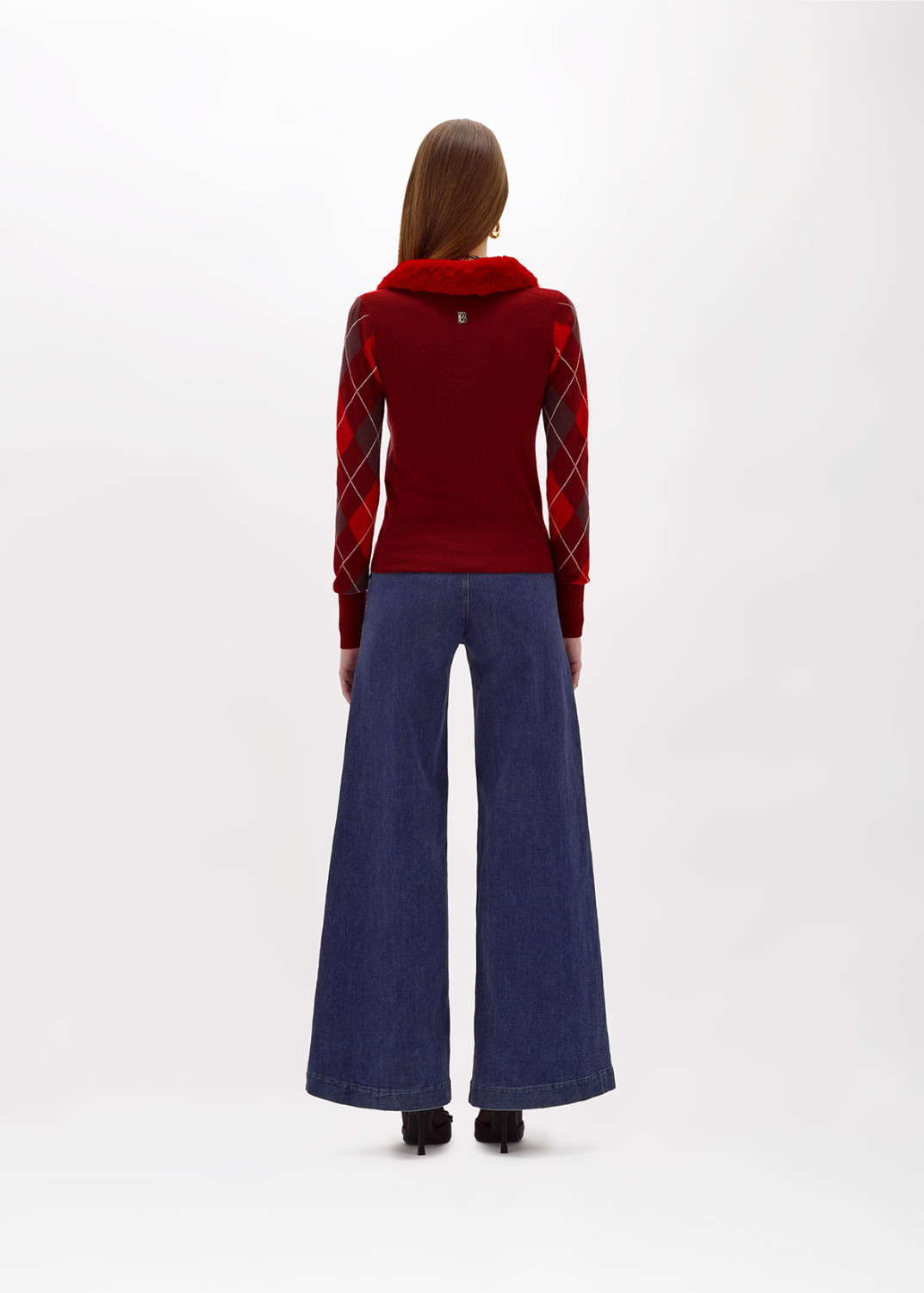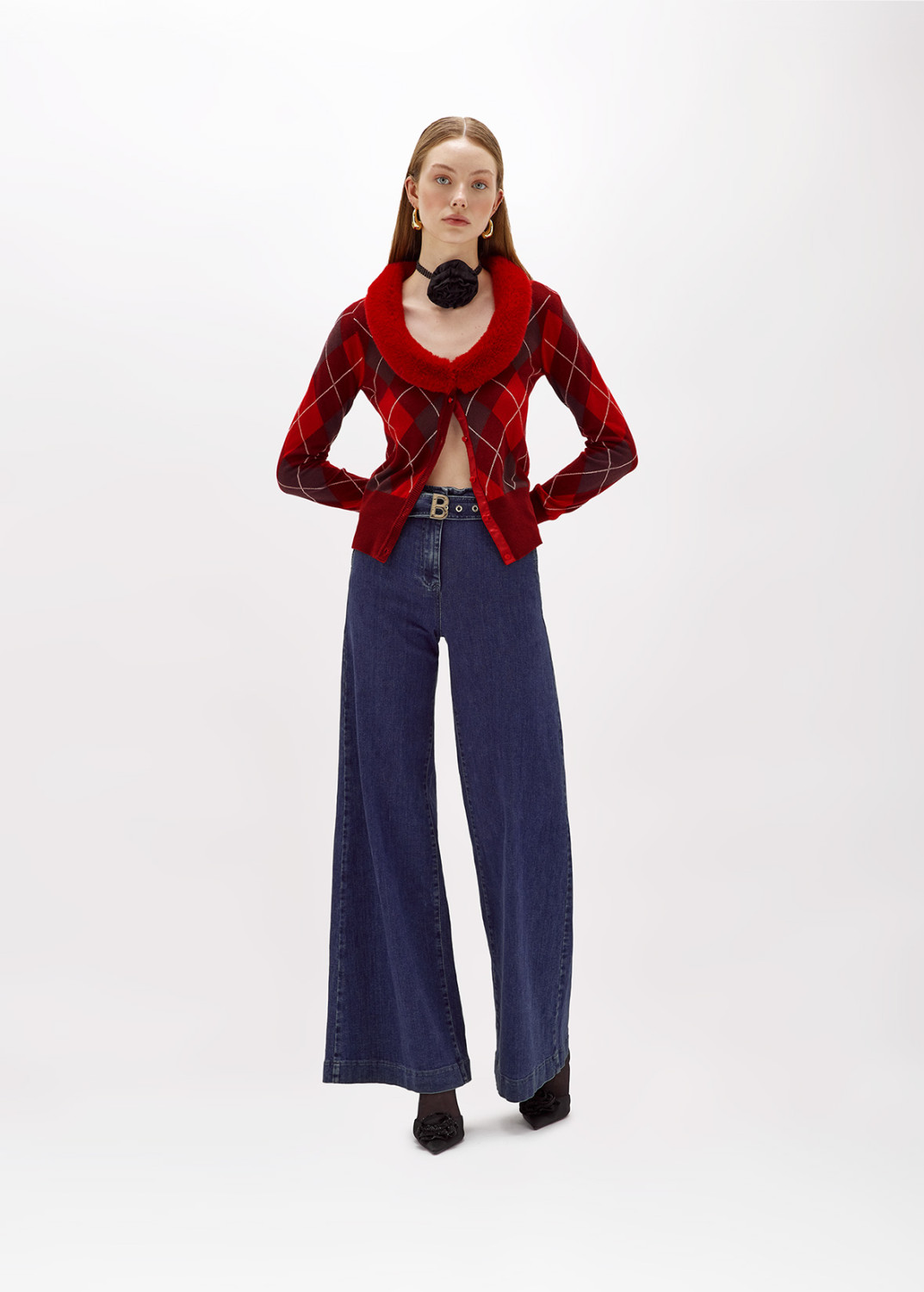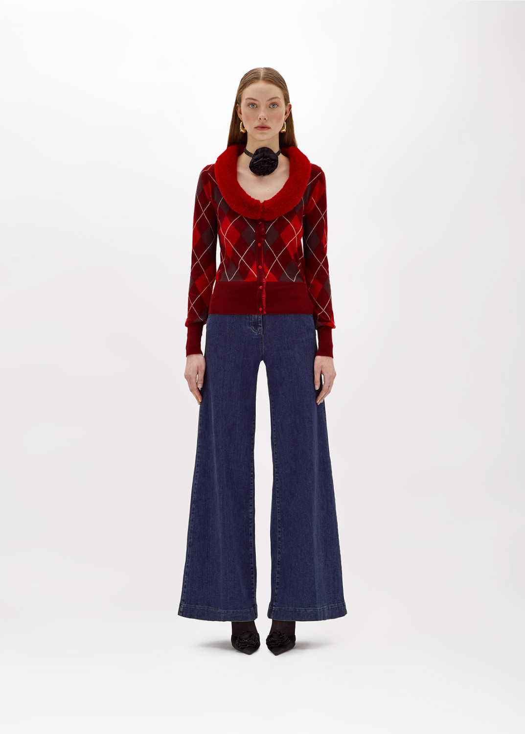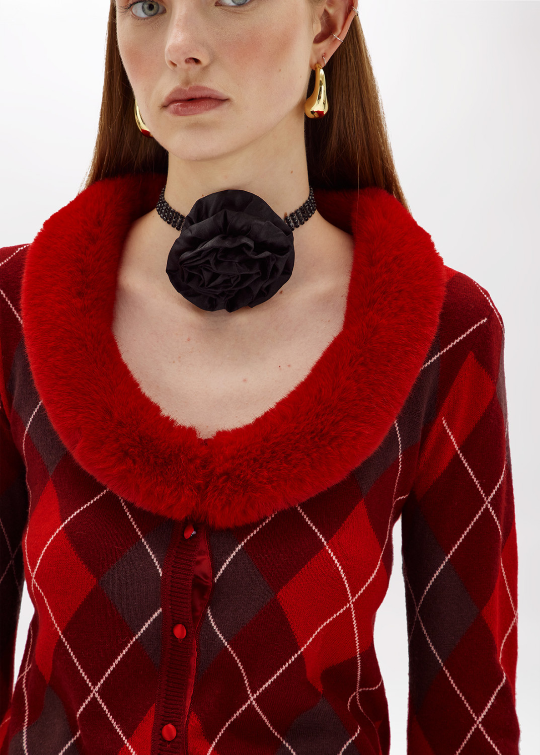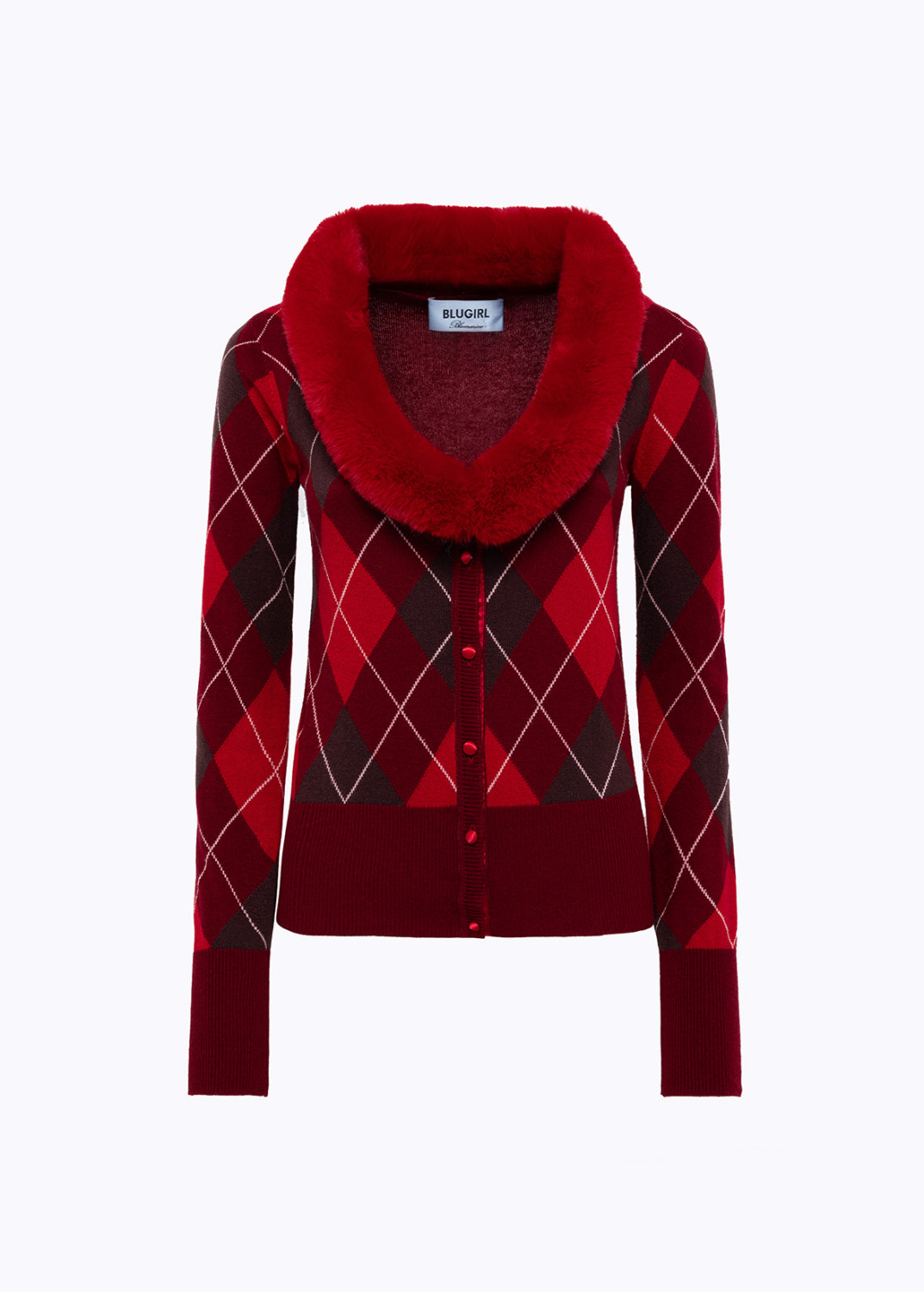 CARDIGAN A ROMBI CON COLLO IN FAUX FUR