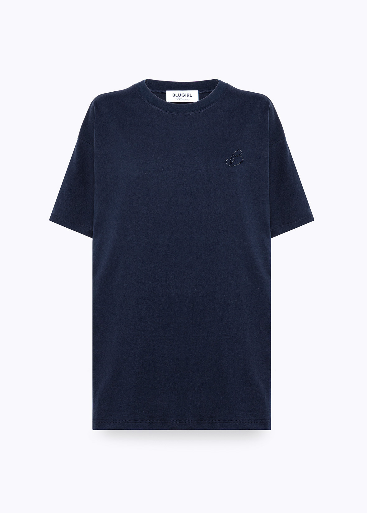 ESSENZIALE E CHIC ALLO STESSO TEMPO. SCEGLI LA T-SHIRT IN JERSEY DI COTONE CON LOGO DI CRISTALLI TONO SU TONO. HA COLLO TONDO, MANICHE CORTE, LINEA OVER. BASTA INDOSSARLA PER ELEVARE LO STILE CASUAL. COMPOSIZIONE: 100% COTONE